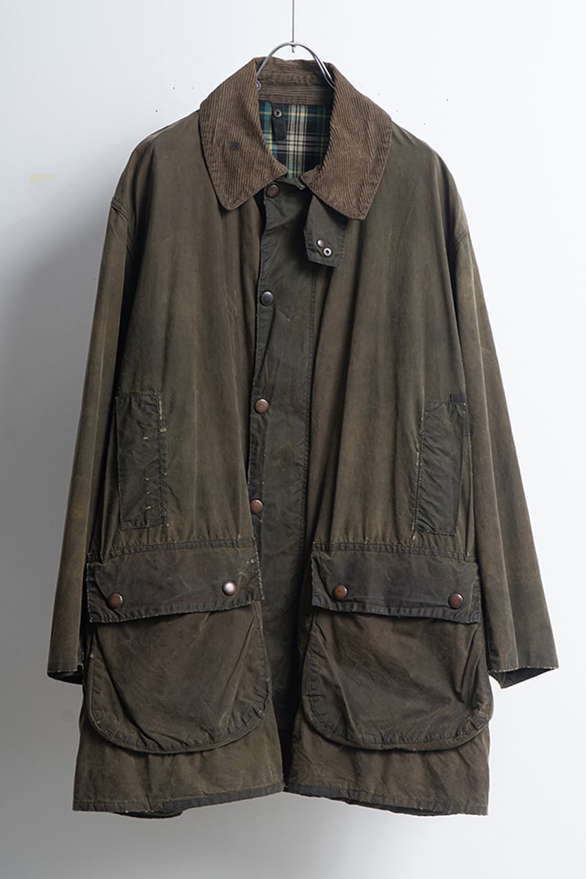 No.001【BORDER】'83 2warrant Barbour Sage 40 バブアー ボーダー セージ 棒ジップ VINTAGE