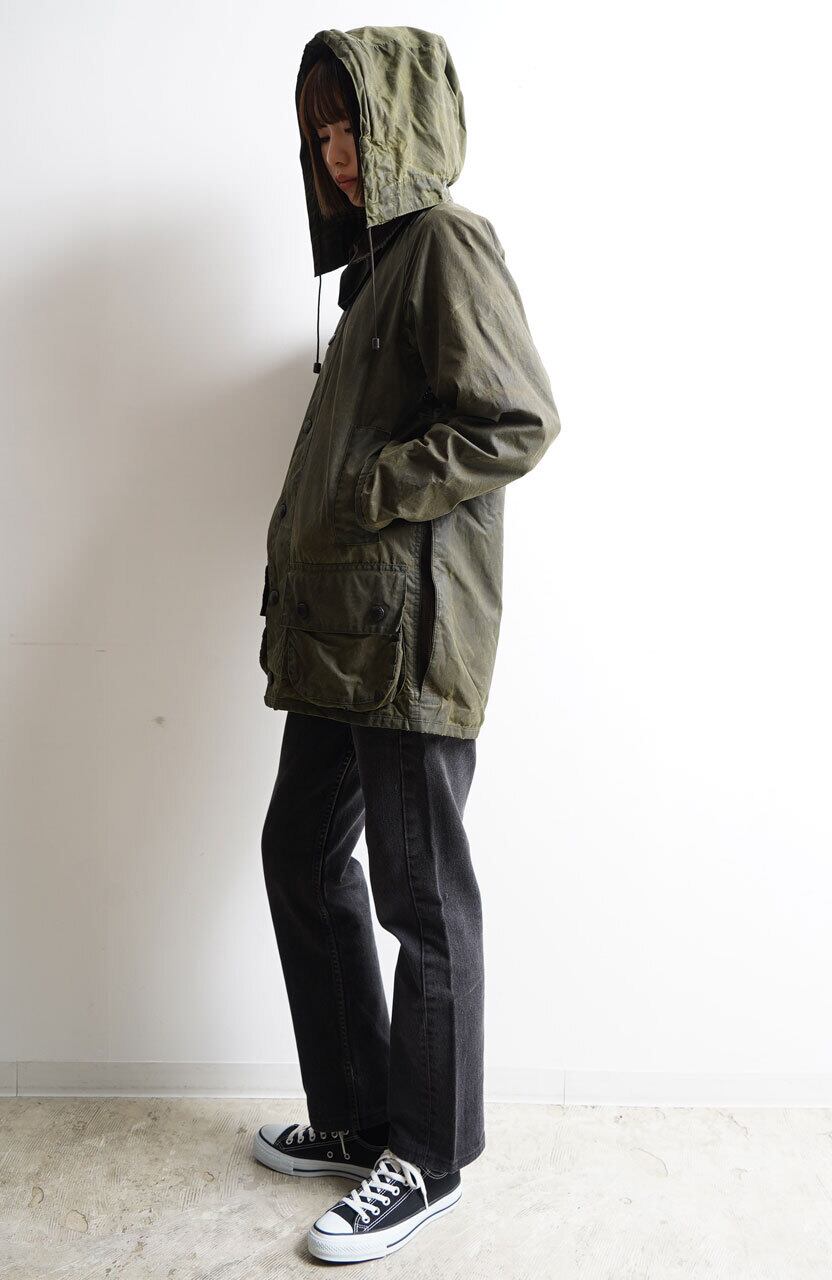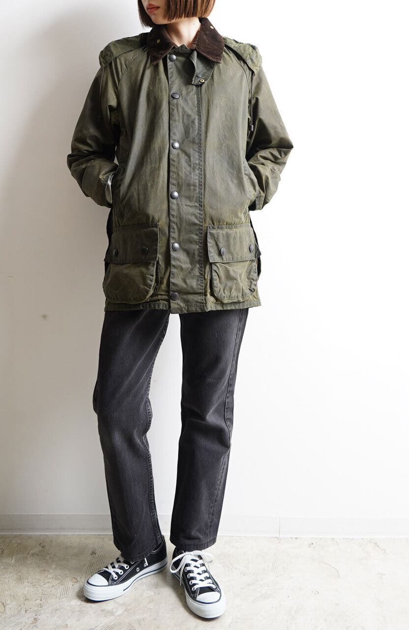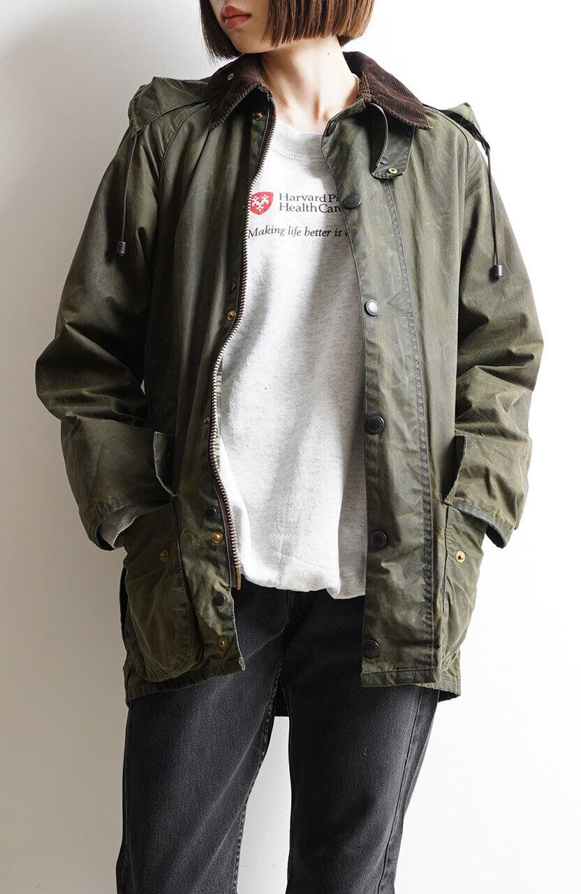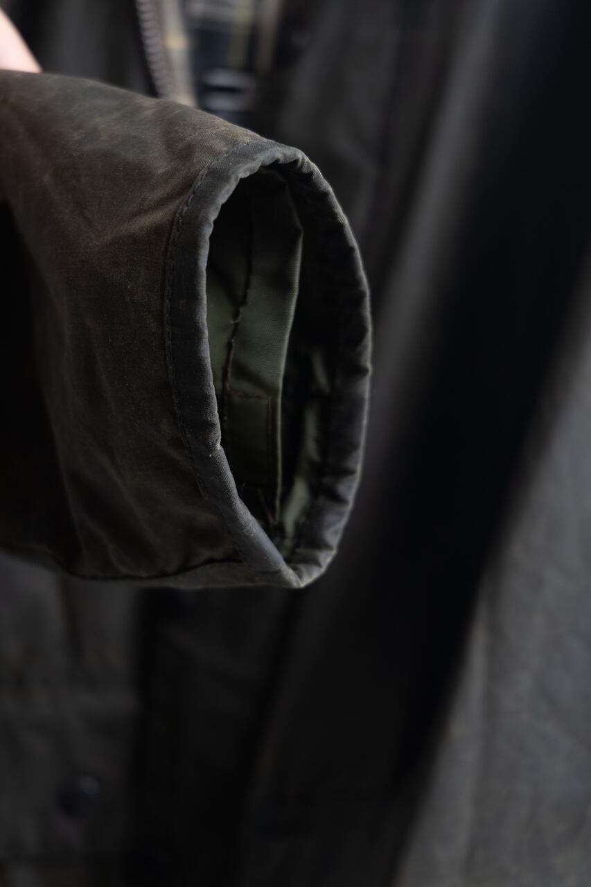 No.011【BEAUFORT】'87 2warrant Barbour Sage 34 バブアー ビューフォート フード付き VINTAGE